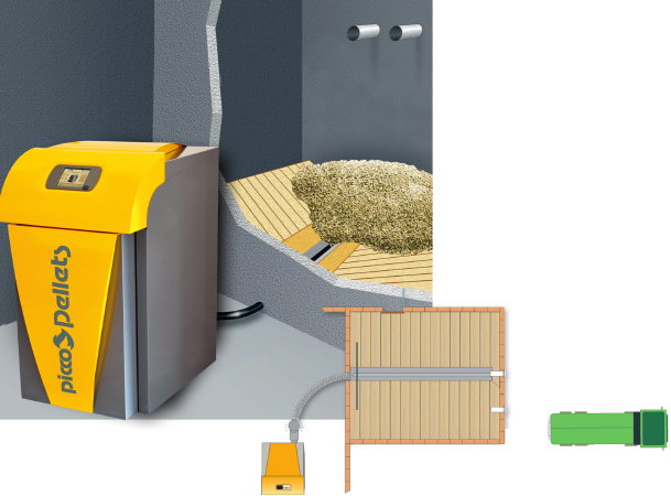 Durch permanente Überwachung des Brennraumes mittels Brennraumfühler und Lambdasonde reagiert die Mikroprozessorregelung auf unterschiedliche Pelletqualität und Brennstoffmenge. Der Brennraumfühler kontrolliert zudem den Einschub der Holzpellets und überwacht die Flamme im Brennraum. Dies alles garantiert eine perfekte Verbrennung sowie geringste Emissionswerte – dokumentiert durch das Gütesiegel ‘Blauer Engel’. Und zusammen mit den minimierten Kesselverlusten infolge der kompakten Bauweise und seinem äußerst sparsamen Pelletverbrauch wird der piccoPellets ‘unschlagbar effizient’.