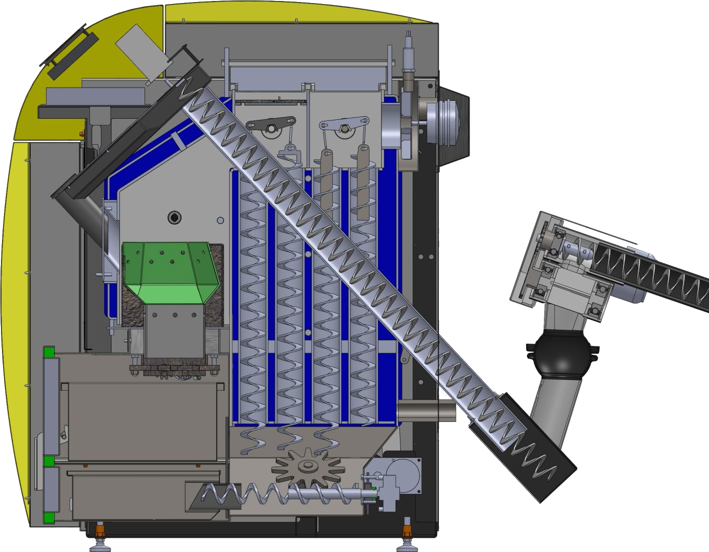 Die speziell für den Pelletbetrieb entwickelte Zellradschleuse schließt die Verbindung von der Feuerung zum Pelletlagerraum hermetisch ab und schafft damit höchste Sicherheit. Der integrierte Abgasventilator sorgt für Unterdruck und damit die richtige Abgasführung in den Kamin.