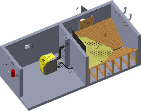 Komplett anschlussfertiger Heizkessel mit spezialgefertigtem, luftgekühlten Edelstahlbrenner, der über ein einfaches Klapprostsystem automatisch gereinigt wird. Auch der Mehrzugröhrenwärmetauscher besitzt eine automatische Reinigungsvorrichtung in Form speziell gefertigter Reinigungsturbolatoren. Die Verbrennungsregelung erfolgt mit Hilfe von Lambdasonde und Brennraumfühler sowie einer Mikroprozessorsteuerung. Dabei wird die Kesselleistung stufenlos dem aktuellen Wärmebedarf angepasst (modulierender Betrieb) und nur das von den Verbrauchern benötigte Temperaturniveau bereitgestellt (gleitende Arbeitsweise).