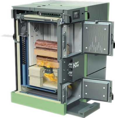Für eine lange Lebensdauer sorgt der komplett mit auswechselbaren Paneelen ausgestattete, große Füllraum (155 Liter beim HDG F-20/30, 205 Liter beim HDG F-40/50). Diese schützen das Kesselblech sowohl von den hohen Temperaturen der Verbrennung als auch vor Verschmutzung. Beim Nachlegen werden die Rauchgase über die Rauchgasklappe abgesaugt und gelangen so nicht in den Heizraum.