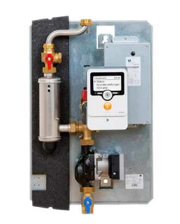 Bei der eTherm P(3kW) und eTherm P+(9kW) handelt es sich um eine Hydraulikeinheit mit integrierter Regelung zur thermischen Speicherung von Photovoltaikstrom zur Eigenverbrauchsoptimierung. Die kompakte Hydraulikeinheit lässt sich modular an Warmwasserspeicher mit Trinkwasser und Pufferspeicher mit Heizungswasser anschließen. Eine Nachrüstung an vorhandene Trinkwasser- und Pufferspeicher ist einfach möglich. Die integrierte Leistungsmesseinheit wird am Einspeisepunkt zum Netz vor dem Stromzähler installiert. Dadurch wird der Vorrang für den Haushaltsstrom systemseitig realisiert. Die Regelung steuert die Leistung der Elektroheizung entsprechend dem Überschuss aus der Photovoltaikanlage um eine Einspeisung ins Stromnetz zu vermeiden. Durch die Leistungsmodulation ist es möglich, trotz schwankender Photovoltaik-Stromproduktion und schwankendem Haushaltsstrombedarf den gesamten Photovoltaik Überschuss thermisch zu nutzen.