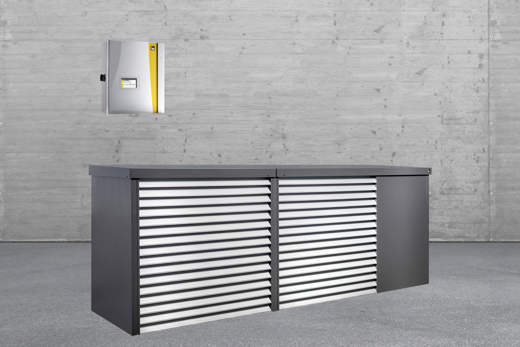 Im Heizraum befindet sich die Inneneinheit, welche als elektrischer Schaltschrank mit einem 7“ Touchdisplay ausgeführt ist.
