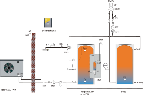 Die TERRA AL 32 Twin ist eine kompakte Luftwärmepumpe für die Außenaufstellung und eignet sich für die Beheizung und Warmwasserbereitung von Ein- und Mehrfamilienhäusern sowie für gewerbliche Bauten. Mit der reversiblen Ausstattungsvariante (P) kann zusätzlich noch gekühlt werden. Die Twin-Technologie arbeitet mit einem Kältekreis und zwei Verdichtern und ermöglicht eine leistungsabhängige Stufenschaltung der beiden Verdichter. In der Übergangszeit kann die Wärmepumpe im höchst effizienten, einstufigen Betrieb arbeiten. Dadurch werden beste Jahresarbeitszahlen erreicht. Eine Vielzahl an gesetzten SRS-Maßnahmen (Schallreduktionsmaßnahmen) gewährleisten geringe Schallemissionswerte. Die Wärmepumpe entspricht den geltenden EU-Normen und Verordnungen, ist mit Kältemittel R410A gefüllt und werksseitig auf Funktions- und Leistungsfähigkeit geprüft.